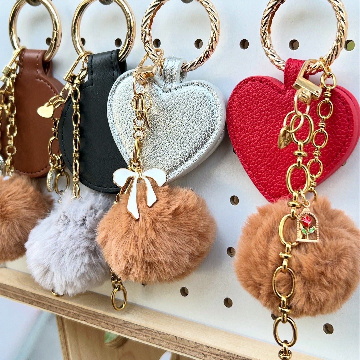 ふわふわポンポンやチャーム×レザークリップが可愛い、